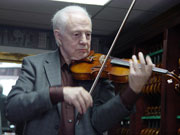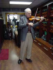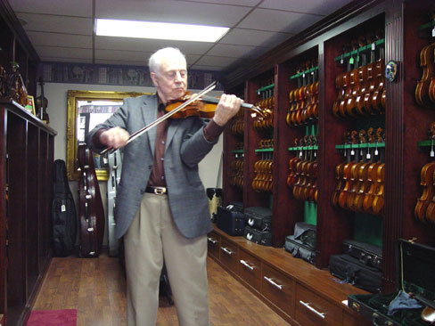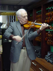 Professor Peter Marsh is trying out one of his favorites "Christie Lam" violins