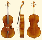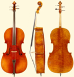 Antique varnish, superb workmanship with ebony fingerboard, pegs, tailpiece and chinrest. Highly flamed maple and seasoned spruce. First clase!