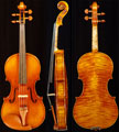 Visually striking, and tonally superior, for the artist player looking for an exceptional instrument. Available to either Guarneri or Stradivari model, and made with highly figured maple and choice spruce. Great workmanship, with rich and carrying sound. The Guarneri model has a slightly darker tone. Fine quality varnish and fittings.